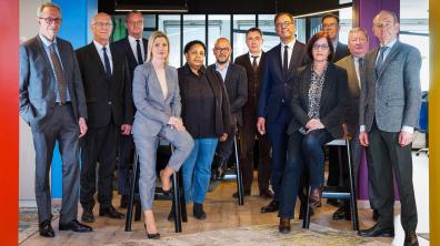 From left to right: Hervé Barbelin, Jean-Christophe Gariel, Cyril Pinel, Marie Riet-Hucheloup, Michelle Agarande, Michel Enault, Patrice Bueso, Jean-Christophe Niel, Karine Herviou, Philippe Dubiau, Louis-Michel Guillaume, Didier Demeillers