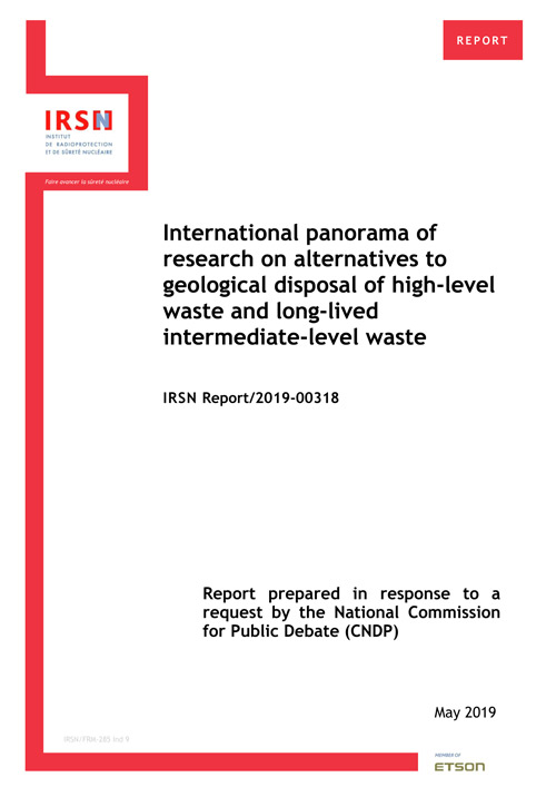 • In preparation for the public debate on the National Plan for the Management of Radioactive Materials and Waste 2019-2021 (PNGMDR 2019-2021), the President of the National Public Debate Commission (CNDP) requested the Institute for Radiation Protection and Nuclear Safety (IRSN) to complete the project owner's file with an international inventory of research on alternatives to the geological disposal of high-level waste (HA) and long-lived intermediate level waste. (ILW).