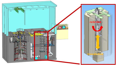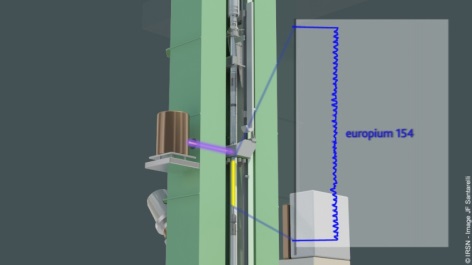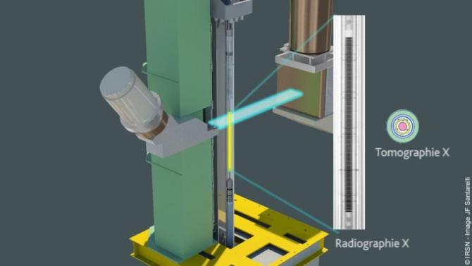 For this the IRIS station includes a shaft that is 1-meter square and 11 meters deep with a motorized sleeve in which the device containing test rod is inserted. An elevator is used to move the device in front of two examinations lines of sight (gamma scanning line of -5 m and X-ray imaging line of sight at -8 m).