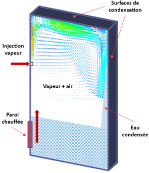 • convection and condensation phenomena within an enclosure immersed in a large volume of water (immersion of an SMR reactor enclosure in a pool) in accident situations
