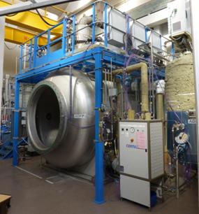 The diameter of the test section (5 times larger than that of Prelude) will enable better analysis of the two-dimensional effects on water and vapour flows, induced by the presence of a bypass at the periphery of the particle bed. In addition, the tests will be carried out at pressures of up to 10 bar, which was not possible with Prelude.