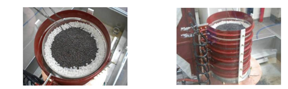 The first stage took place on the Prelude device, which is a reduced-scale model of the Pearl installation. The test sections vary in diameter from 110 to 290 mm and contain between 5 and 60 kg of particles. This set-up was used to validate the technological options for the Pearl installation, in particular to carry out feasibility studies on induction heating and qualification tests on the instrumentation. The first tests of the experimental programme, which took place from 2010 to 2012 on this device, enabled the simulation tools to be improved and validated.