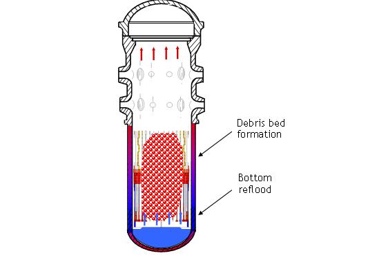 In the event of an accidental and prolonged loss of cooling, the fuel rods making up the core of a pressurised water nuclear reactor (PWR) will be damaged, and a large proportion of them will collapse, forming what is known as a ‘debris bed’. This is in fact a mass of fragments from the zircalloy cladding and the UO2 pellets (or, in the case of MOX fuel, UO2 and PuO2 pellets) they contain. This problem was highlighted in the analysis of the Three Mile Island accident in the United States in 1979.